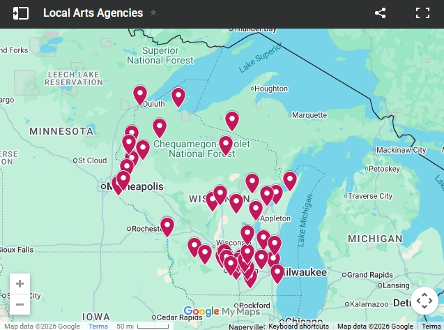 Local Arts Agencies (May 23, 2025)Across the United States, more than 4,500 local arts agencies (LAAs) provide a wide range of programs and services. LAAs are intermediaries, serving artists and arts organizations, local residents, visitors, and other community partners. From the north to the south, from the east to the west of Wisconsin, you can find LAAs everywhere in the state.